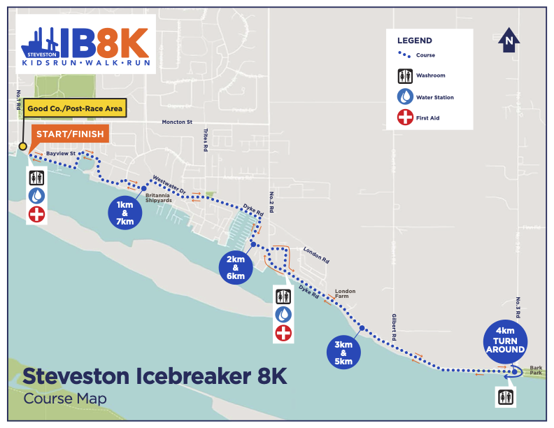 The Kajaks Track & Field Club is pleased to host the annual Steveston Icebreaker 8K and New Balance Kidsrun! The IB8K is Richmond's first and ONLY road race of the year, and the first race in the Lifestages Lower Mainland Road Runners Series. Our race offers a flat and fast course through scenic and historic Steveston. Start your year off with a personal best, and the best views in the city in this family-friendly event!